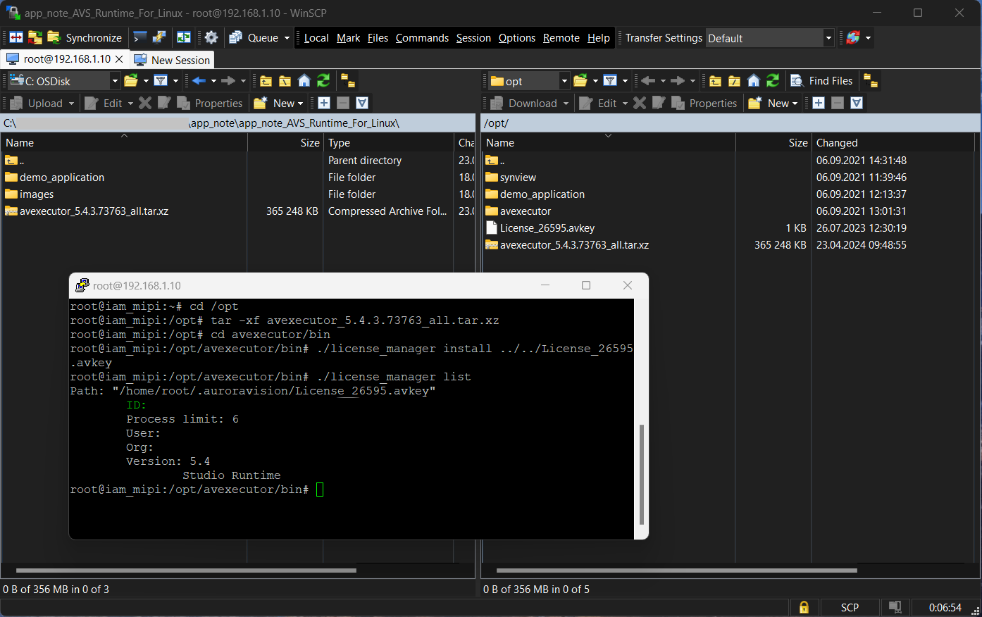 tar -xf [avexecutor_archive.tar.xz] cd avexecutor/bin ./license_manager install ../../[License_file.avkey] ./license_manager list