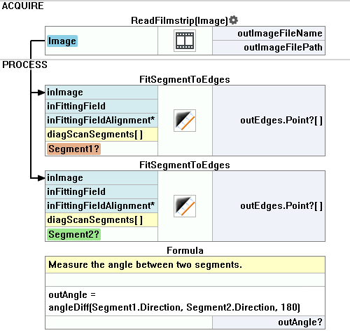 16. To measure the angle between the found segments, you can use a formula. You don't have to connect labeled outputs to the formula to be able to use them.