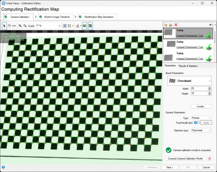 - Use Compute Calibration Model to calculate the Camera calibration model and activate the next step.