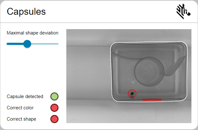 The task is to inspect a quality of capsules and create a simple WebHmi. The following defects should be detected: black spots on the surface of a capsule and deformations of its shape.