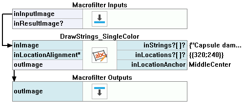 - Create a macrofilter output outImage and connect it to the output of the DrawStrings_SingleColor filter.