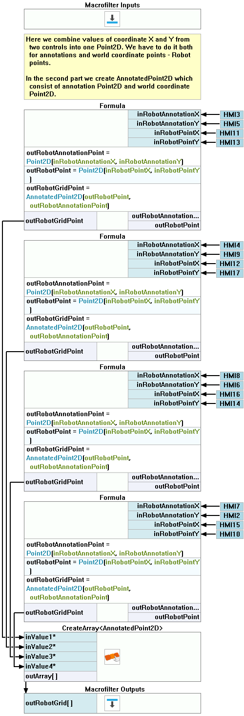 Create the AnnotatedPoint2DArray Formula's input, name it inRobotGrid and connect it with the macrofilter's inRobotGrid input.