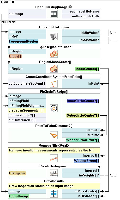 In Workspace Explorer, open the workspace Examples, and in the Filmstrip window, select the Washers dataset. Drag the Image channel to the ACQUIRE section.