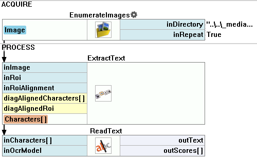 To perform most OCR applications, two filters are needed. Extracting the text from the image can be done using the ExtractText filter. To get textual values from regions, the ReadText filter can be used. Both of these filters have a specialized GUI editor that is a convenient way to perform the text reading.