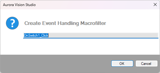 An event handler is a subprogram in Aurora Vision Studio that determines behaviors to be implemented when an associated event occurs. It is in fact simply a macrofilter that is executed once for each received event. If there are several WebHMI controls which should trigger the same procedure, one event-handling macrofilter can be used for all of them.