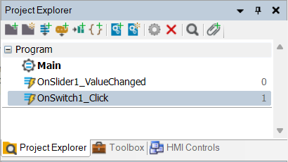 Once the event handler has been created, it becomes available in the Project Explorer:
