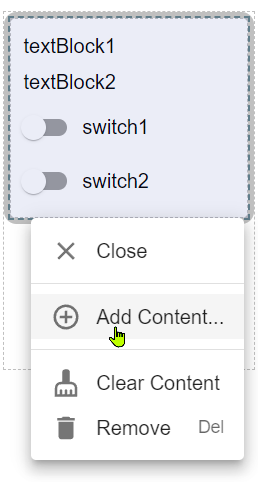 action button, and choose Set Content.... From menu, choose StackPanel.