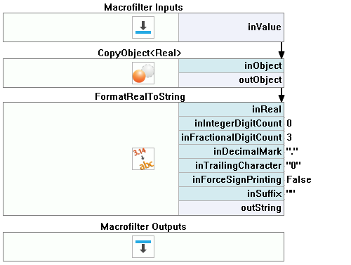 - In UpdateAngleControls macrofilter, connect FormatRealToString filter output outString to textBlock2 control inText input;