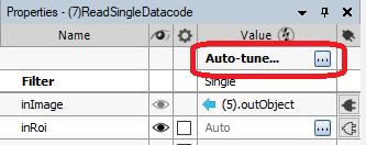 To open the Editor, double-click on the ReadDataCodes filter or click on Auto-tune... in the Properties panel. Note that inputs to be modified by Auto-tune cannot be connected.