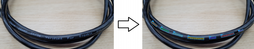 An example of optical character recognition using AvsFilter_DL_ReadCharacters tool. Left: The original image. Right: The image with the recognized characters drawn.