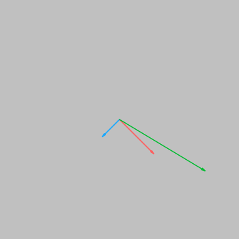 LerpVectors performed on red inVector0 = (50, 50) and blue inVector1 = (-25, 25) with inLambda = -1,0. Green is the resulting outVector.