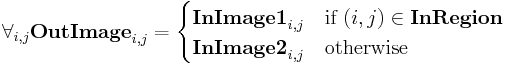 its location lies inside the inRegion; otherwise the pixel is equal to the corresponding pixel of the inImage2.