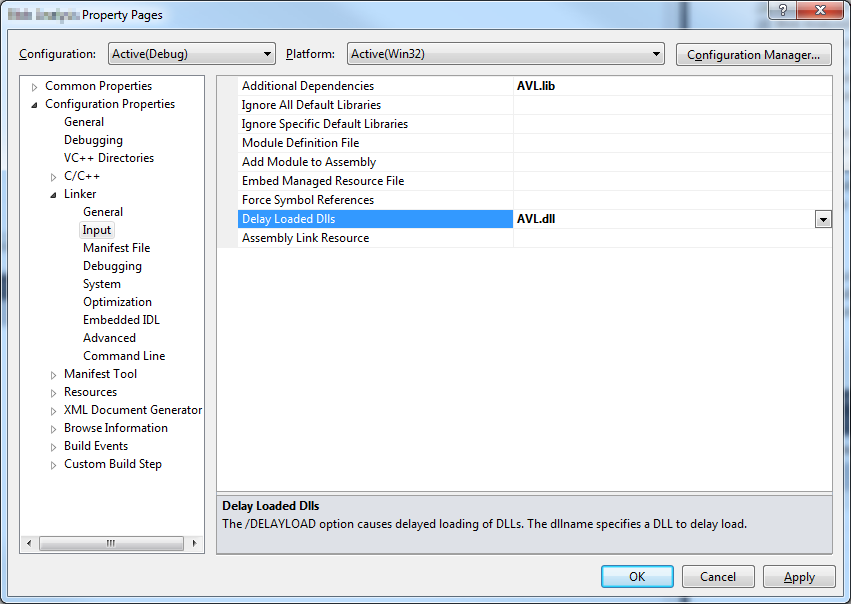 To avoid these false positives, AVL.dll should be configured to be delay loaded. This can be done