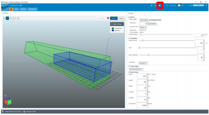 The following instruction provides information on how to connect and use the TriSpector camera to receive a 3D image in the Aurora Vision Studio. For additional information refer to the device documentation. While working with the device keep in mind work safety and general safety regulations.