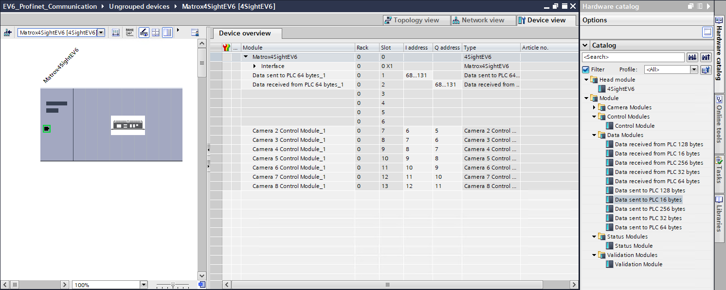 Drag & drop appropriate data modules in Device view tab (in MILConfig 64bytes modules were set):