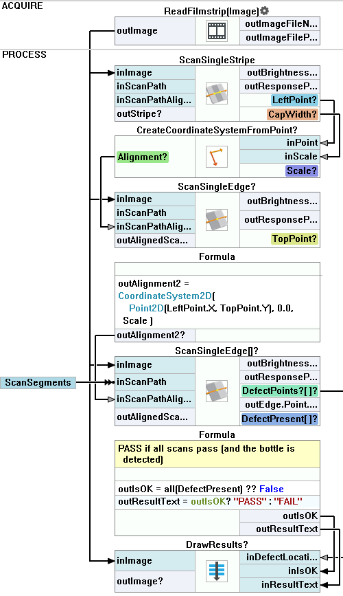8. Add another Formula filter. Create the output outIsOK. This output will be shown in the images. The bottle will pass only if there are no gaps detected. :