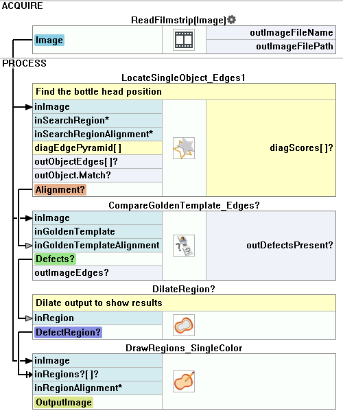 3. Add the CompareGoldenTemplate_Edges and connect the inImage to the output of the ReadFilmstrip.