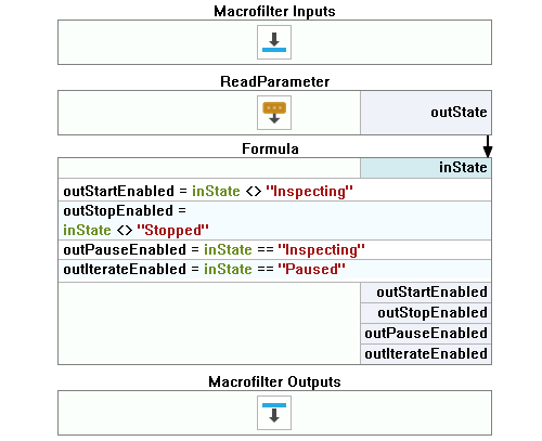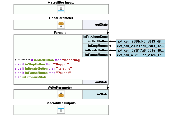 • Add the WriteParameter filter with the State input. Connect the input with the formula output.