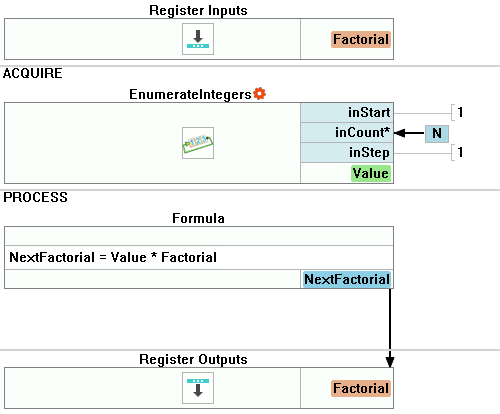 Connect the NextFactorial formula's output with the register's output: nextFactorial .